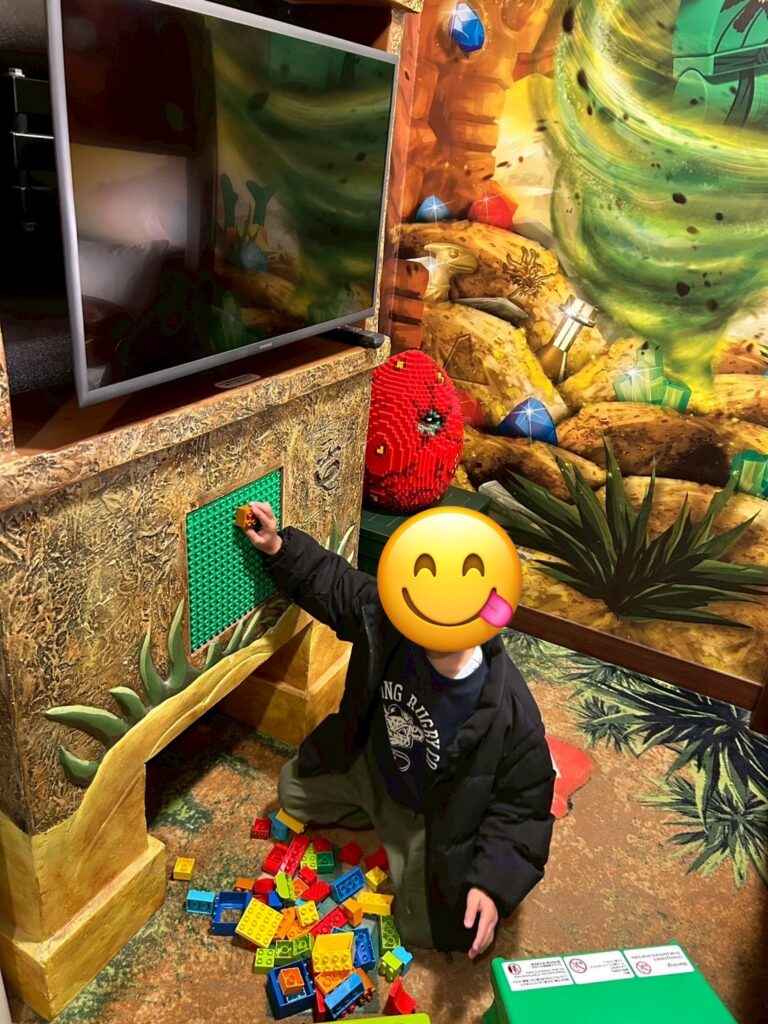 今回はニンジャゴー部屋に宿泊して、部屋のミニ謎解きに大興奮。
